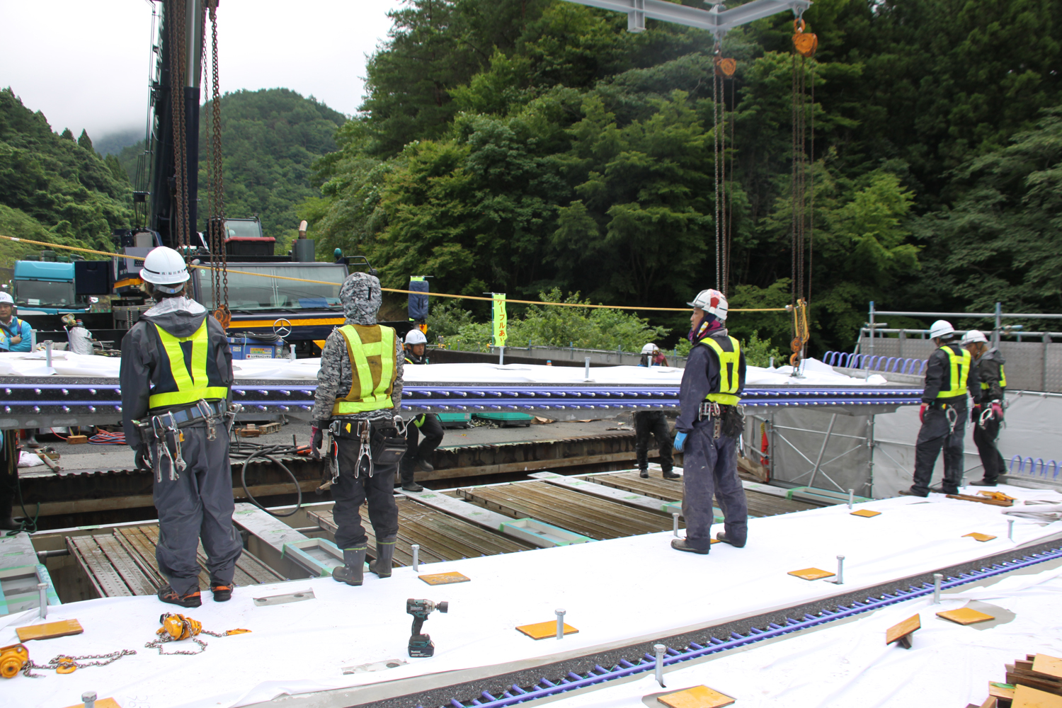 床版の施工状況(右写真のみ井手迫瑞樹撮影)