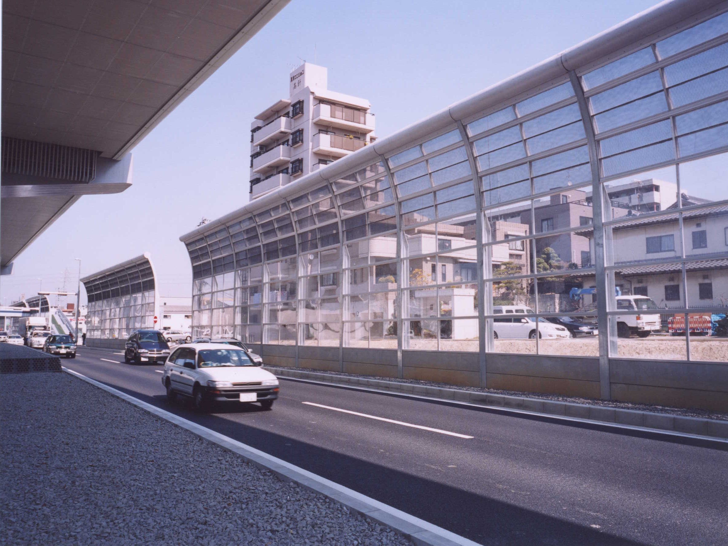 遮音壁については、新設と既設の改修という2つの分野がありますが、これからは取替需要がメインになっていくものと思われます。当社ではここでもポリカーボネート製の透光型吸音パネル『ビューソーン』を展開しており、既に10万ⅿ2の実績を有しています。透明膜状吸音材と透光板とを組み合わせたパネルで、景観や日照が要求される道路、防音壁用として最適な製品と言えます。製品の上塗りには防汚三種の光触媒を塗布して煤などが付着しても降雨により汚れが落ちる機能を付与することも可能です。