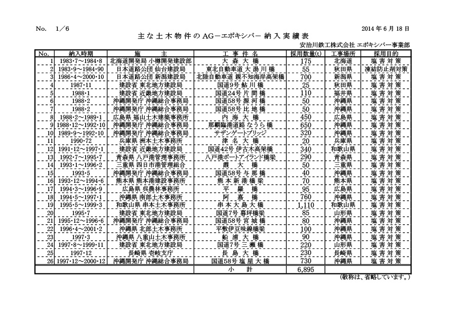 「AG-エポキシバー」~30年で30万㌧の実績~