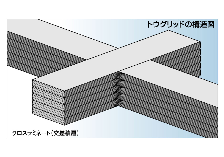 高強度・高弾性の連続強化繊維が2方向に配列されているため、鉄筋と同等の