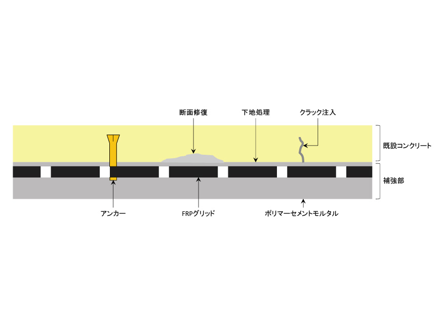 「FRPグリッド増厚・巻立て工法」〜FRP格子筋とポリマーセメントモルタルを用いた耐久性の高い補強工法〜