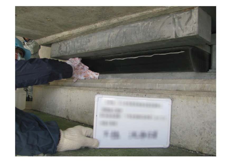 ゴム支承のオゾンクラックは近年損傷事例が多く報告されている。その対策方法としては、耐オゾン性の高い弾性塗料の塗布やゴムシートの貼り付けなどが行われているが、作業に熟練性が問われたり、二液性のため取り扱いが難しかったり、温度変化に伴う挙動に追随できず塗膜が剥がれたり破れたりするなどの課題があった。