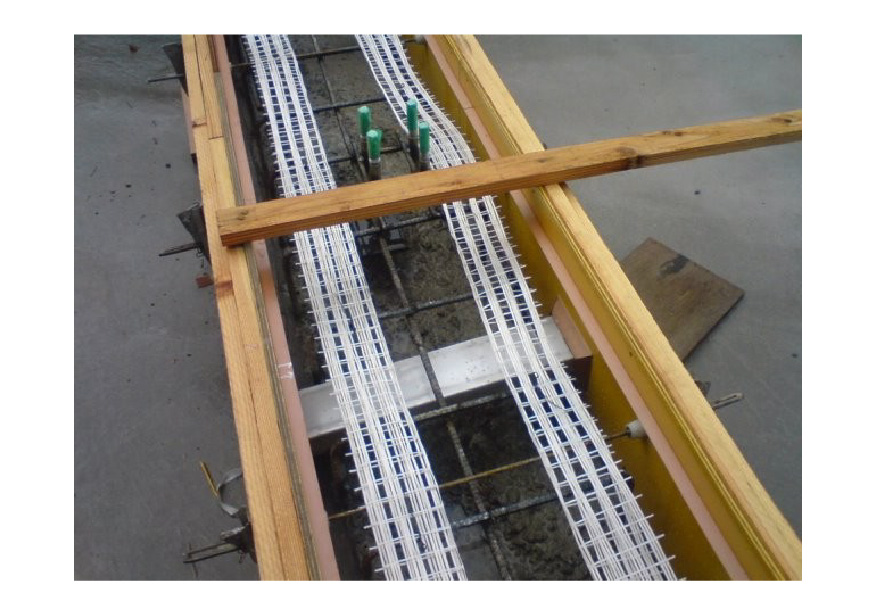 ネットは長さ方向の繊維を多く、幅方向の繊維を少なく(写真)しており、引張剛性と良好な付着性能によって、ひび割れ抵抗力を高めている。30㍉×30㍉の網目間隔のため、コンクリートやモルタルにも馴染み易い。あらかじめ鉄筋に結束するかコテ等で伏せこむだけで簡単に施工ができ、ハサミで簡単に切れるため、適量を適切な個所に簡単に取り付けられる。
