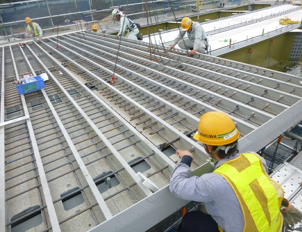 軽く扱いやすく足場も不要なことから現場工期を鉄筋コンクリート床版(RC床版)の約1/2に短縮可能