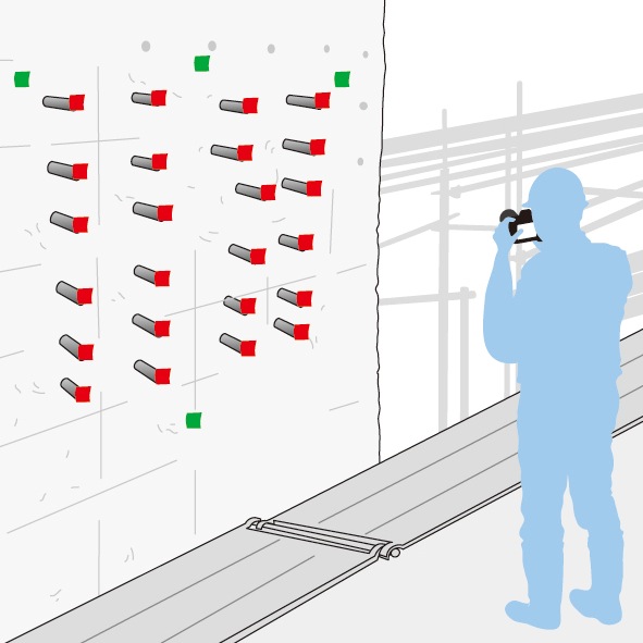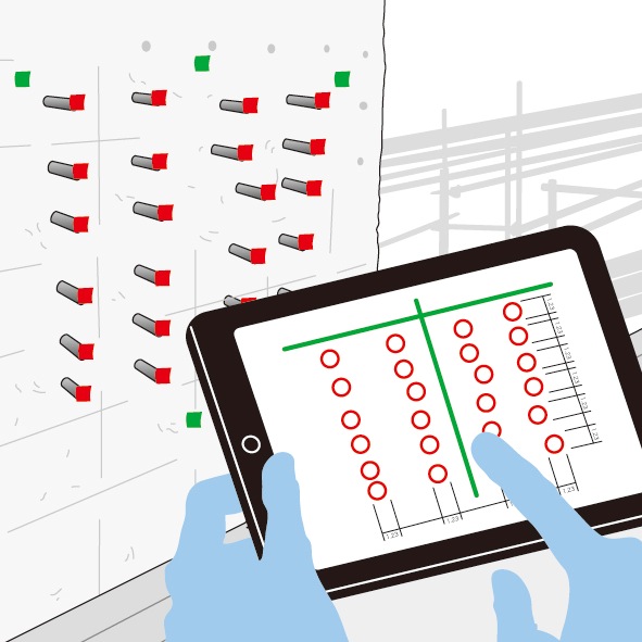 例えば、当社ユーザーのA社では、ブラケット1基(アンカーボルト18本)あたりの計測から図面化までに120分の時間を要していたが、本システムを使用することにより同作業が30分と、現場作業時間を75%削減することに成功している。