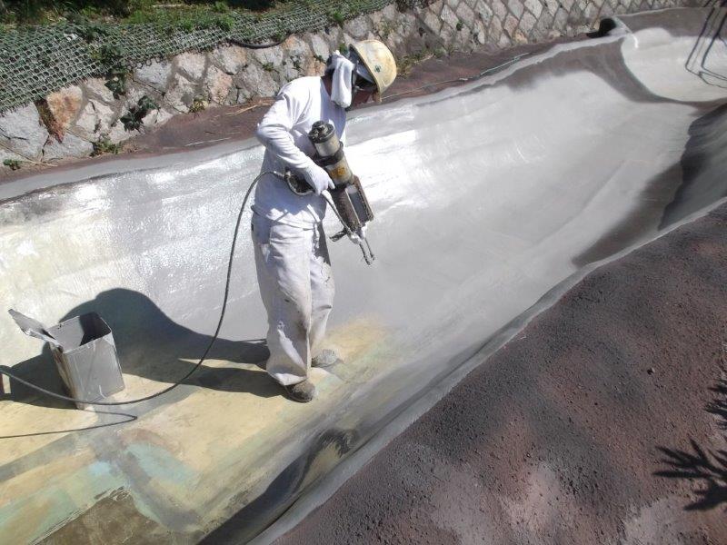 - 施工後数分で塗膜強度が発現し、標準仕様では凹凸のある箇所にも1日で施工が完了するので工期の短縮が可能