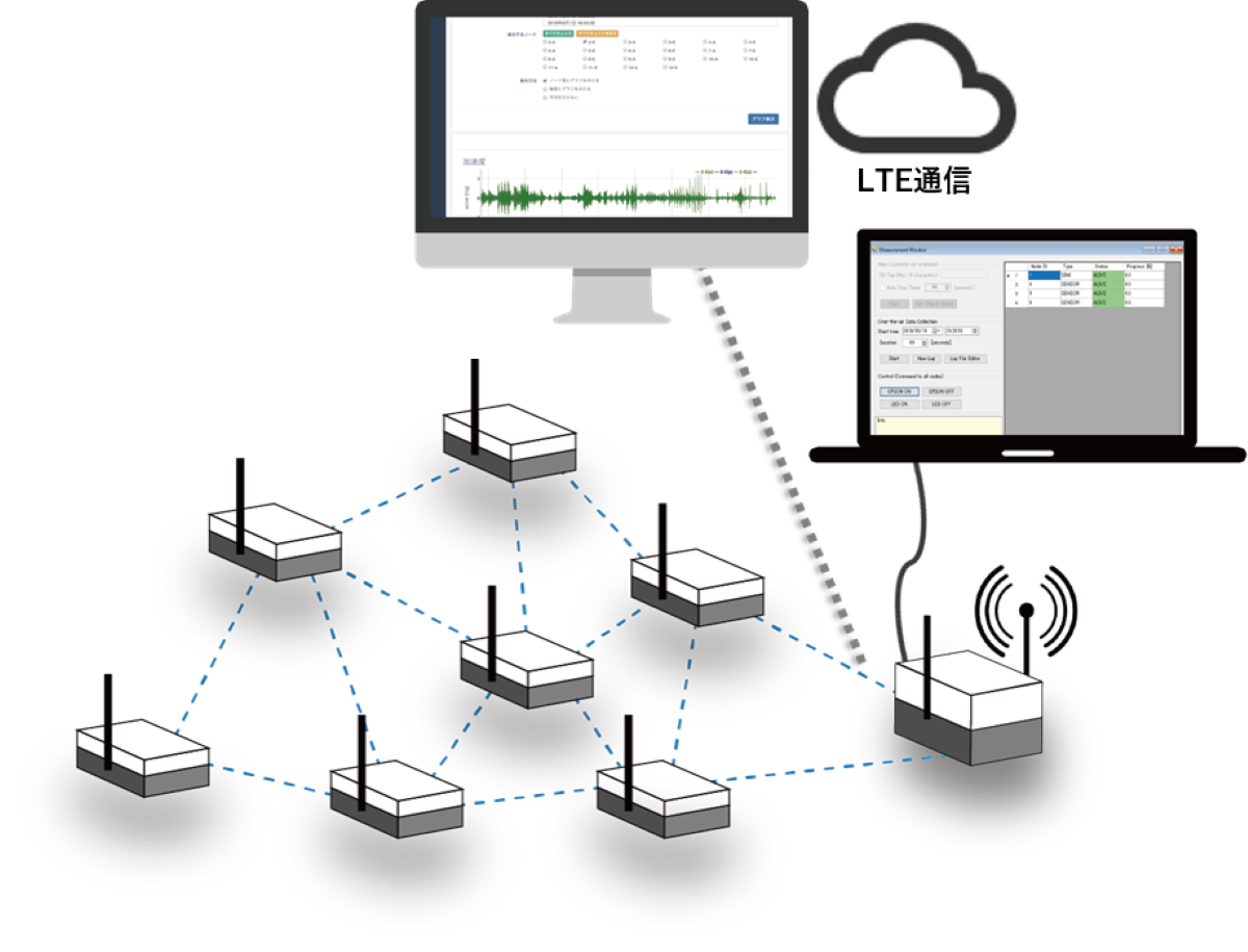 • 橋梁などの構造モニタリングに最適な高精度3軸加速度センサ搭載