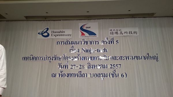 阪神高速道路と特殊高所技術は、特殊高所技術を「ニンジャテック」という名称でEXATに技術紹介しており、8月にはタイ国内の長大橋であるラマ9世橋を使って現場でのデモンストレーションやプレゼンを含めたセミナーを二日間に渡って開催。EXATの副総裁以下多くの技術者が特殊高所技術を見学し、高い評価を与えていた。