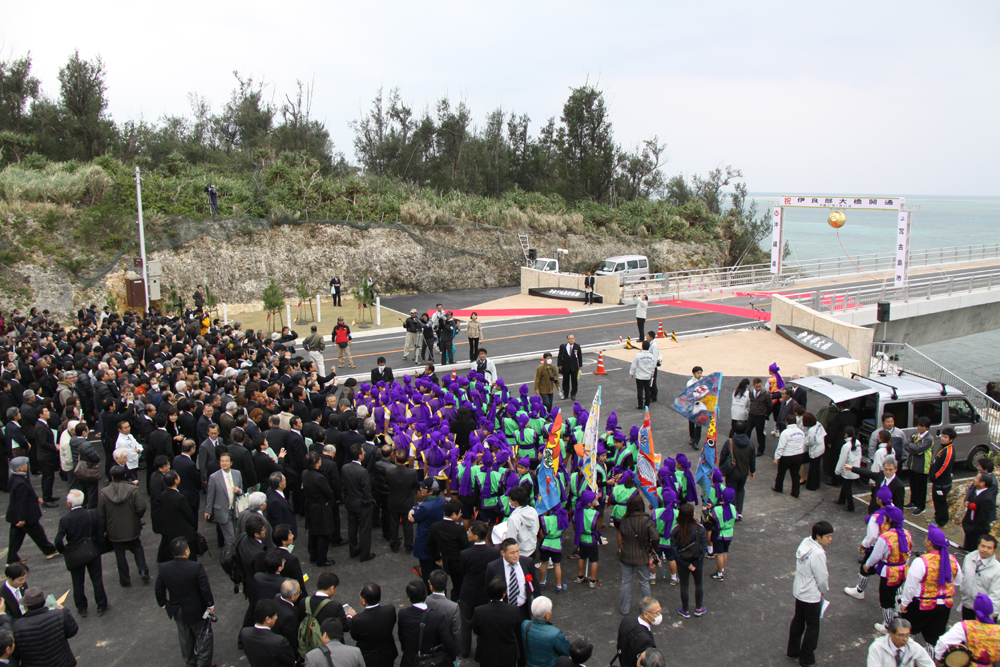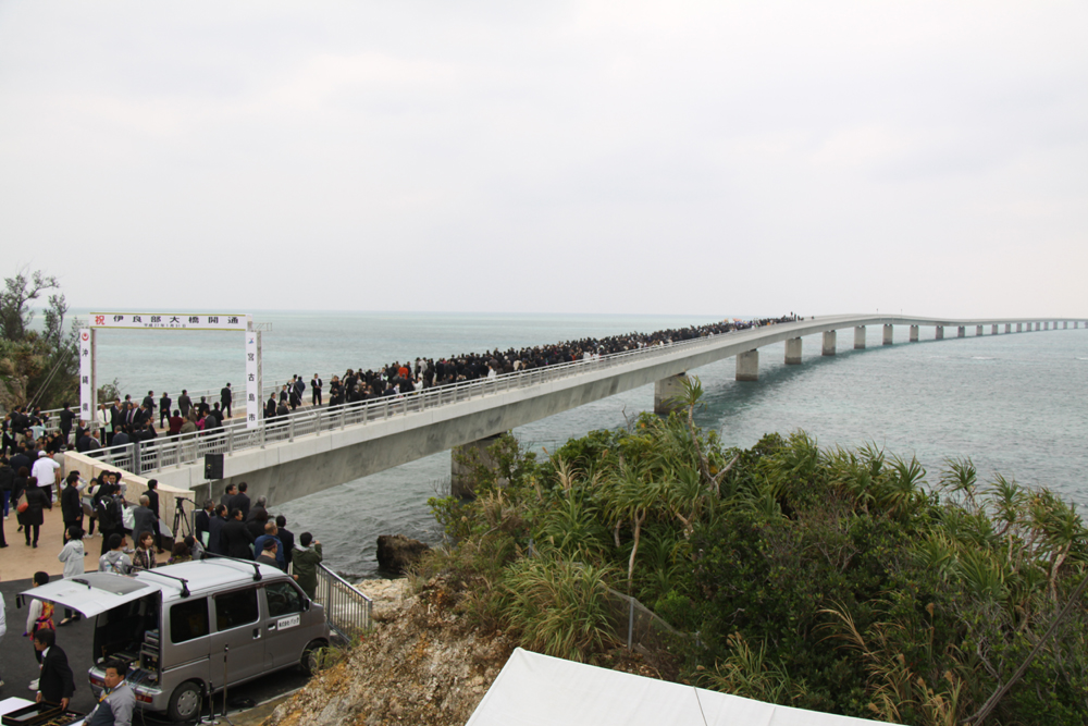 完成した伊良部大橋 開通式には多くの関係者、市民が集まった
