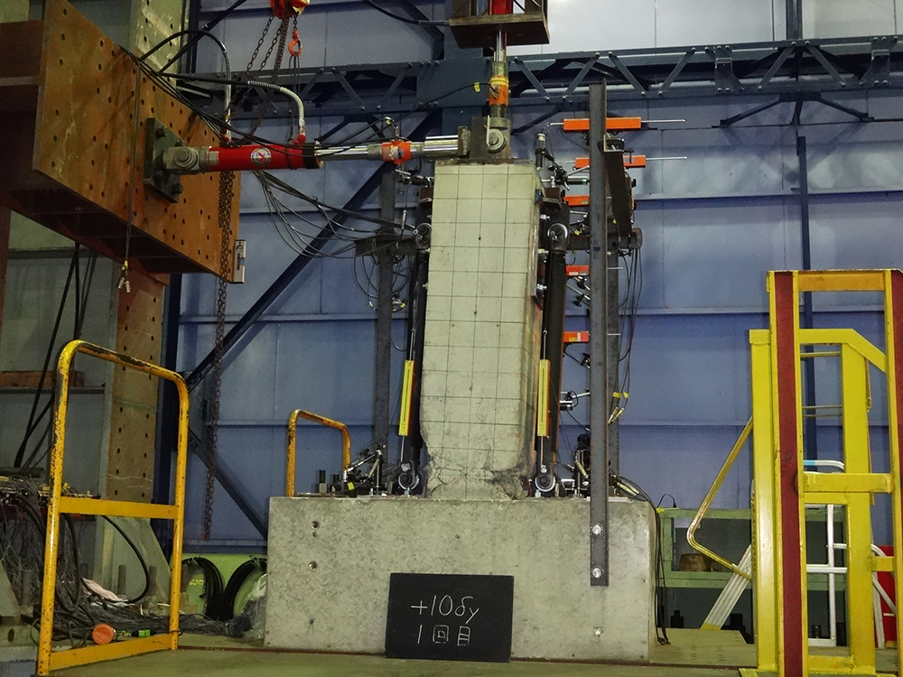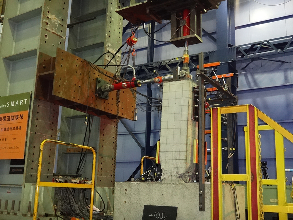 JFEシビルは土木向けでの適用拡大を図り、コンクリート構造学を専門とする早稲田大学の秋山充良教授と共同で1年前から橋脚耐震補強工法の開発に着手した。現在、制震ダンパーを取り付けた5分の1の橋脚模型を使った正負交番載荷実験を行っている。実験では、橋梁の上部構造に相当する一定軸力と地震荷重に相当する水平力を繰り返し載荷した時の変形性能などを検証。今年度中に実験結果を取りまとめた後、早ければ4月にも設計コンサルタントや施主に向けて提案活動を始める。