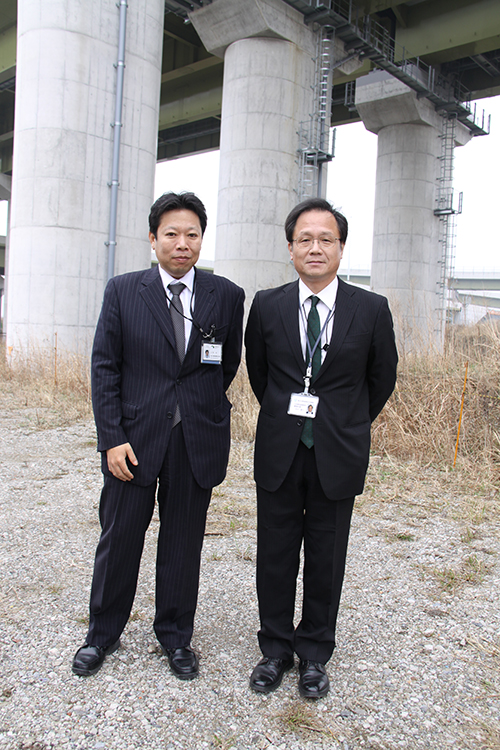 協力して建設を進めた国土交通省北首都国道事務所の石川雄一所長(右)とNEXCO東日本さいたま工事事務所の上田功所長(左)