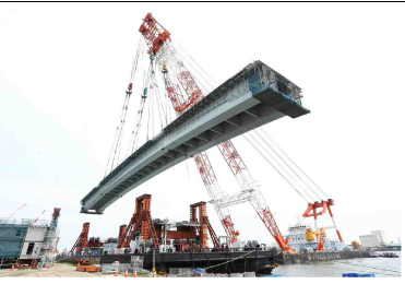 台船リフトアップ工法では国内最長143㍍の桁を架設
