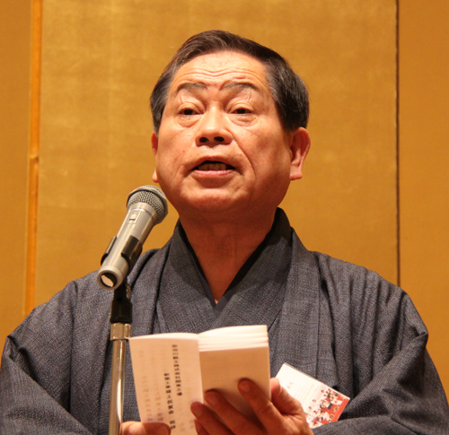 祝賀会には馬場竹次郎栃木県副知事(左)、大久保寿夫小山市長(右)も出席し、祝辞を述べた