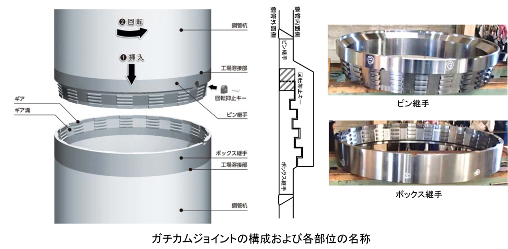 「ガチカムジョイントTM」 空頭制限、狭隘個所において鋼管杭の継手作業を大幅に軽減