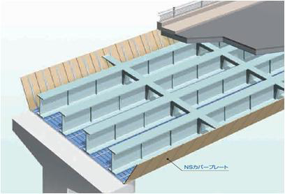 NSカバープレートは、耐久性に優れた塗装ステンレスを外装に使用した橋梁用高機能外装材で、内皮材、芯材、外皮材の三層から成るサンドイッチパネルと橋梁本体への取付に必要な金具を組み合わせているもの。同製品で橋梁上部工を覆うことで、橋梁を風雨、日射、塩分等の劣化要因から守るとともに、安全かつ確実に近接目視点検が可能な常設足場の役割も果たす。すでに沿岸の塩害地域の橋梁にも採用されているほか、今後も整備の加速が見込まれる都市部高速道路網への展開(跨線橋・跨道橋)など実績拡大を目指す。
