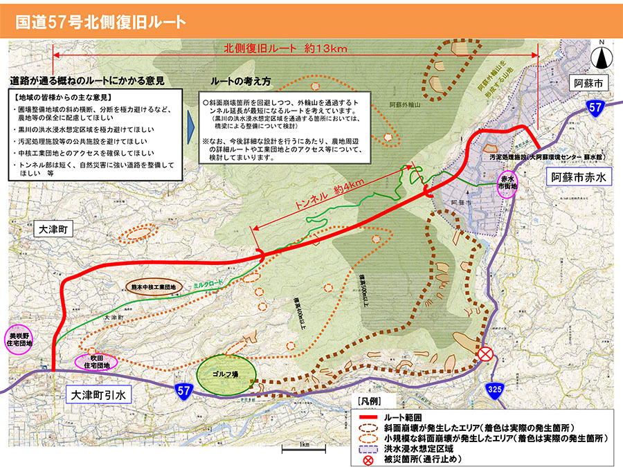 国道57号北側復旧ルートを決定 延長は約13㌔