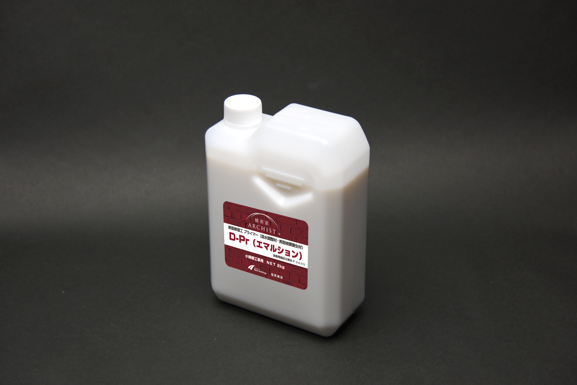 プライマー「D-Pr(エマルション)」は、下地のコンクリート面に予め塗布することで、素地の吸い込みを抑制し、ドライアウトを防止、付着強度の向上・安定化をもたらす。また、セメント系塗り材料の仕上げ面に塗布することで、表面の急激な乾燥を防ぎ、ひび割れの発生を抑制すると共に、安定した強度発現をもたらす。