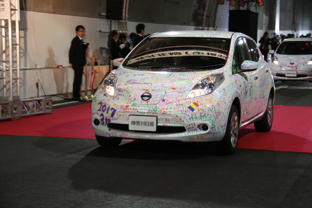 菅義偉官房長官を中心にテープカット/渡り初めで登場したメッセージカー