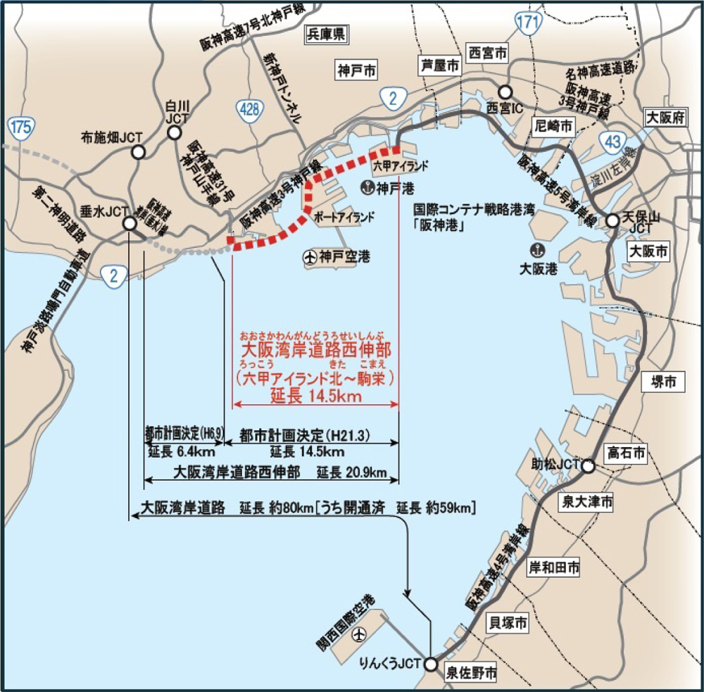 阪神高速道路は1日、同社の建設・更新事業本部内に「神戸建設所」を新設した。六甲アイランド北~駒栄間14.5kmが大阪湾岸道路西伸部として事業化され、共同事業者として事業に着手することに対応したもの。所長には金治英貞氏が着任した。事務所は同社の神戸庁舎に置く。当初の組織・人員は、企画・総務渉外・設計の3課17人で臨む。