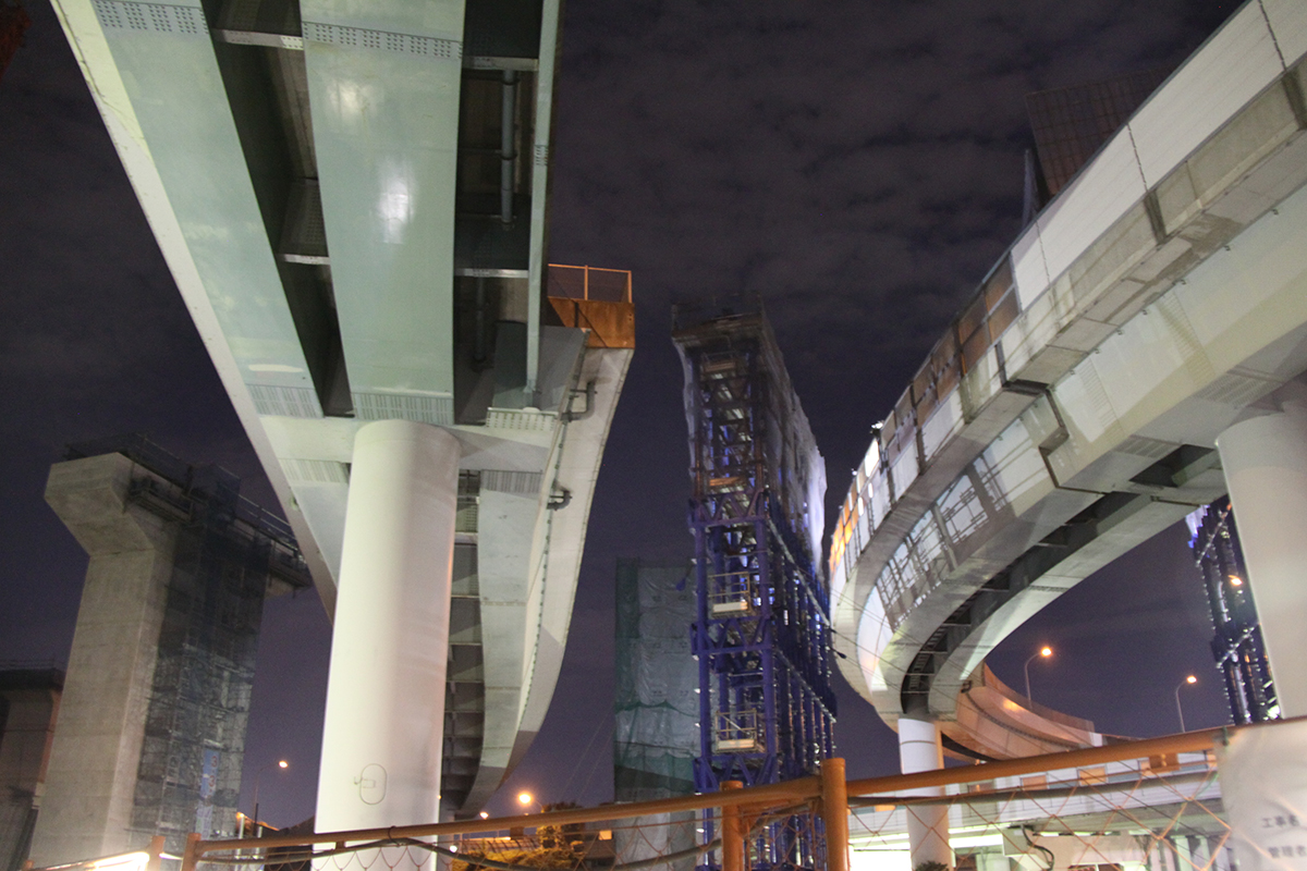 22日夜間から23日早朝にかけて既設C、Dランプ橋上に
