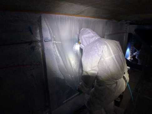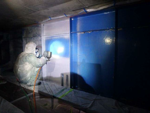 塗り替えの際のブラスト前に塗布し、粉じんを抑制