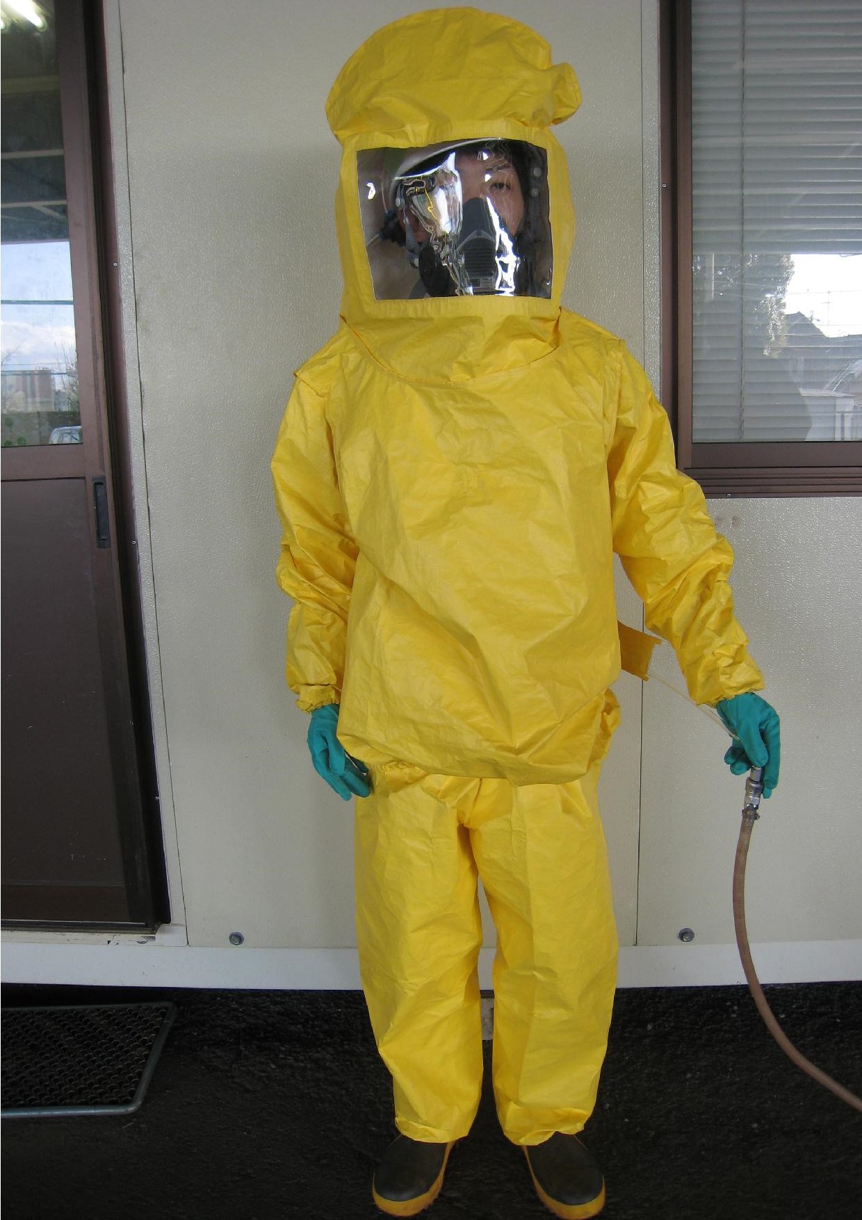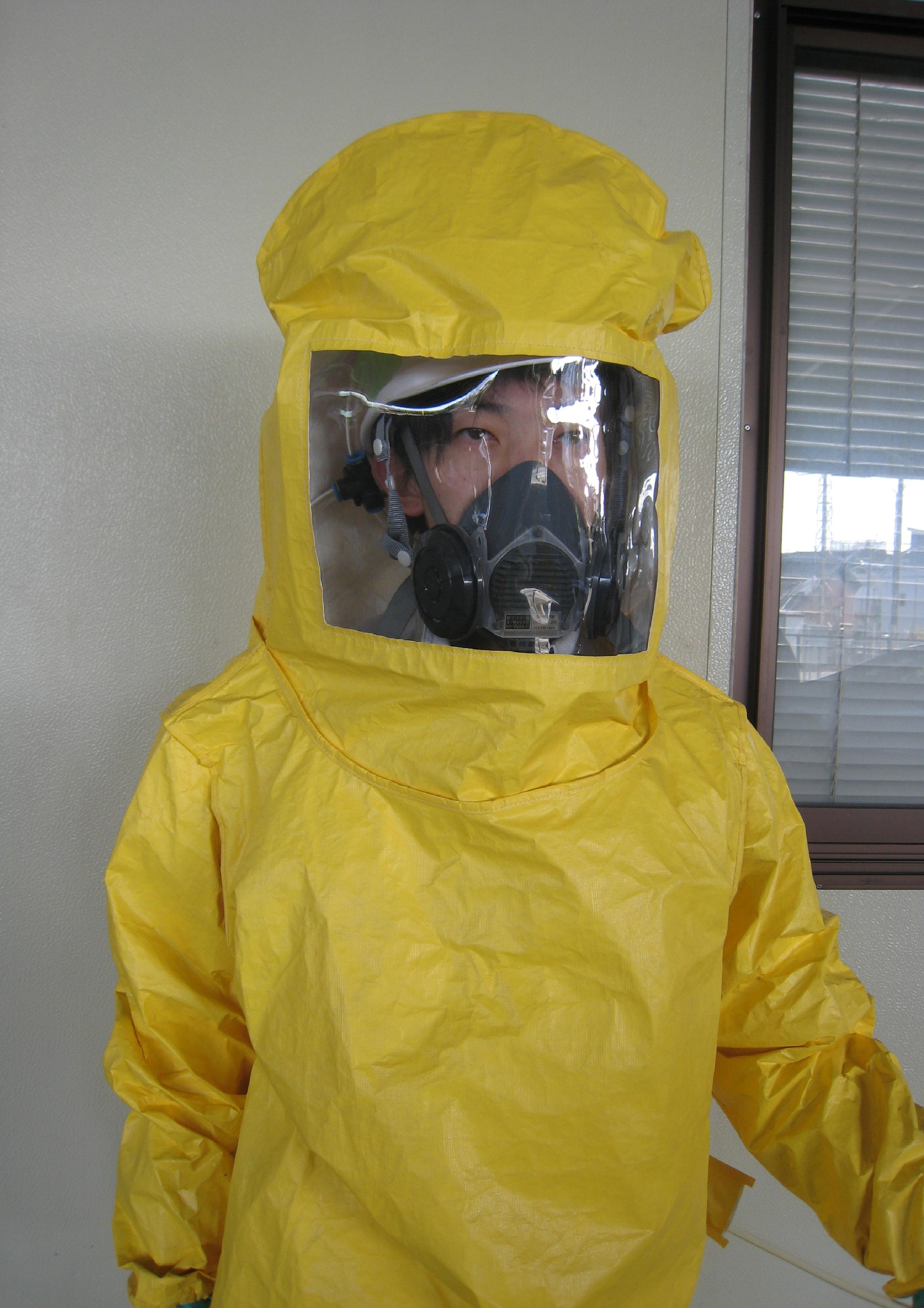 従来の電動ファン付き呼吸用保護具+タイベックスーツに比べてフィルター交換の頻度を抑制でき、不具合が起きた際も防塵マスクをフェールセーフとして付けることで作業者の安全を確保している。