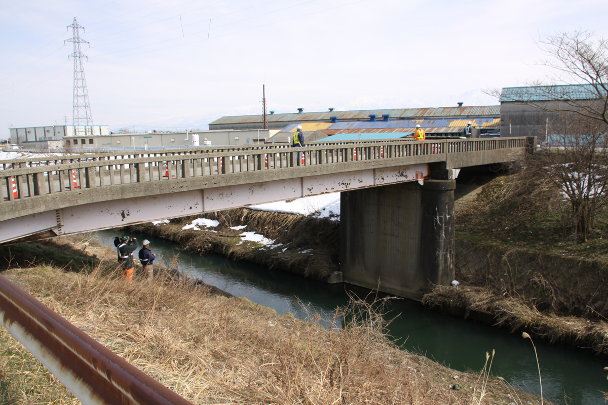 写真は富山市が所管する興人橋(下写真の接写も、井手迫瑞樹撮影)