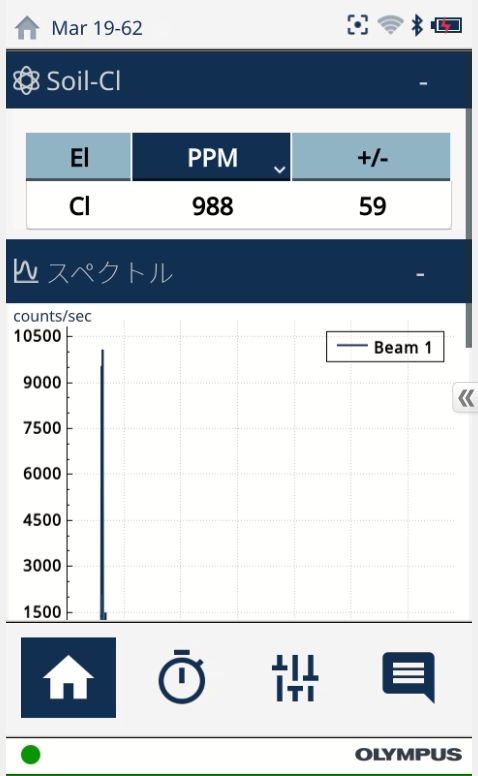 調査に要する時間は、含有量が多いほど速く、1000ppm以上なら2、3秒で測定可能。微量な場合は30~60秒ほどの測定時間となっている(上写真が画像表示例)。