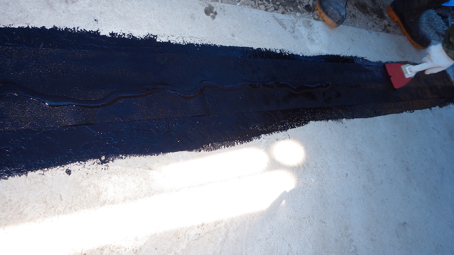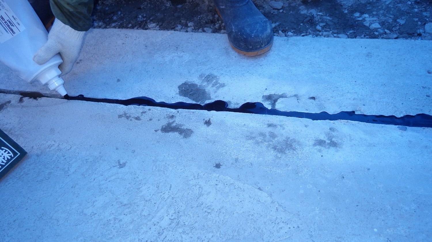 AOS工法の流れ ①ジョイント充填、②メッシュ設置