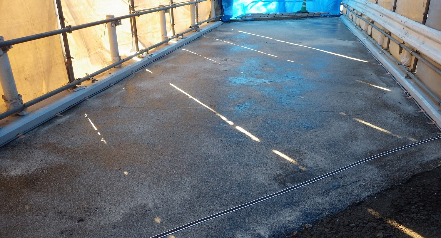 橋梁の伸縮取替と床版防水を一体施工し従来比工期50%短縮、コスト15%強縮減