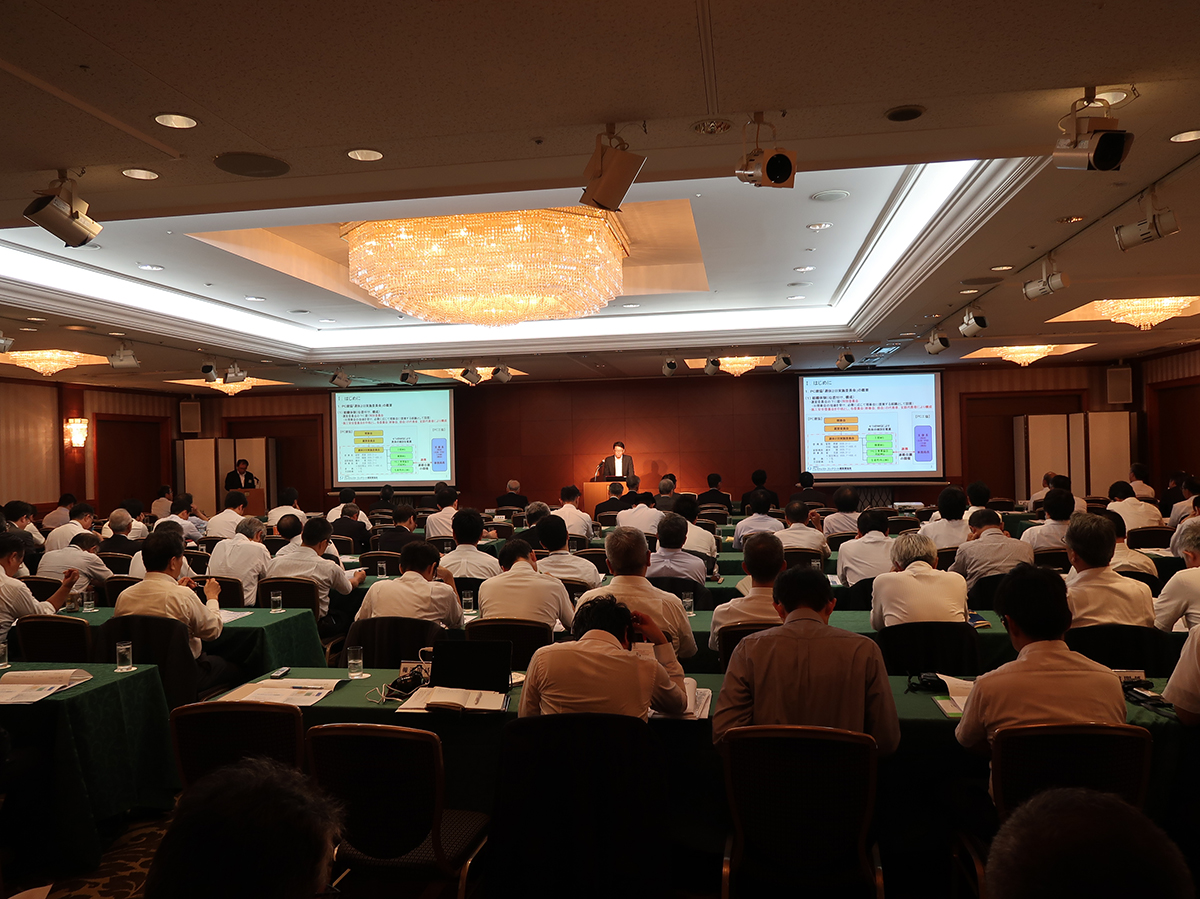 プレストレスト・コンクリート建設業協会(PC建協)は19日、東京都のホテルグランドアーク半蔵門で第8回業務報告会を開催し、会員を中心に約200人が参加した。冒頭の挨拶で藤井敏道会長(右肩写真)は、平成30年7月豪雨災害に対してPC建協では災害対策本部を設置し、各行政機関との災害協定のもとに迅速な対応を取るべく体制を整えていると報告したうえで、「今年度のPC建協の重点テーマは、安全最優先のもとに働き方改革と生産性向上への取組みとなる。今回の報告はそれに沿ったものが中心になる」と述べた。