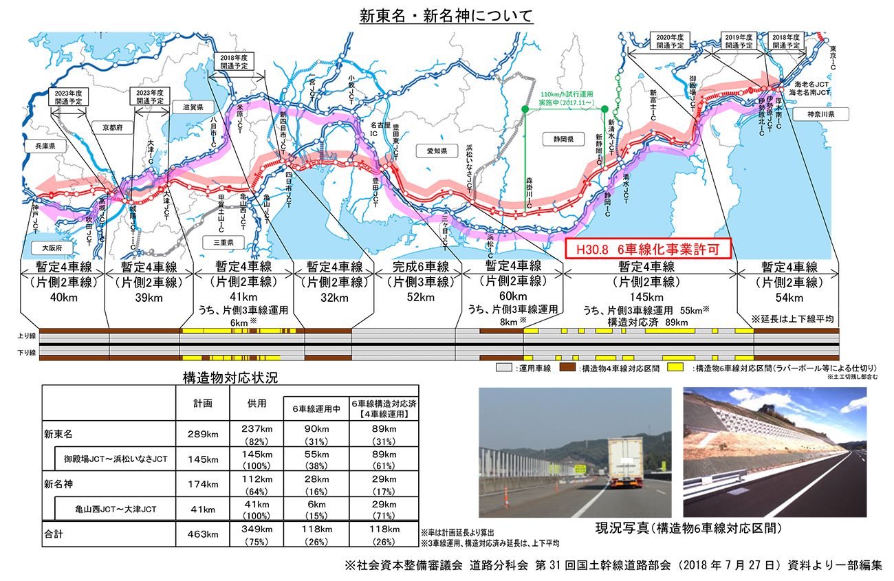 新東名高速(御殿場JCT~浜松いなさJCT)は2年後を目途に順次6車線化