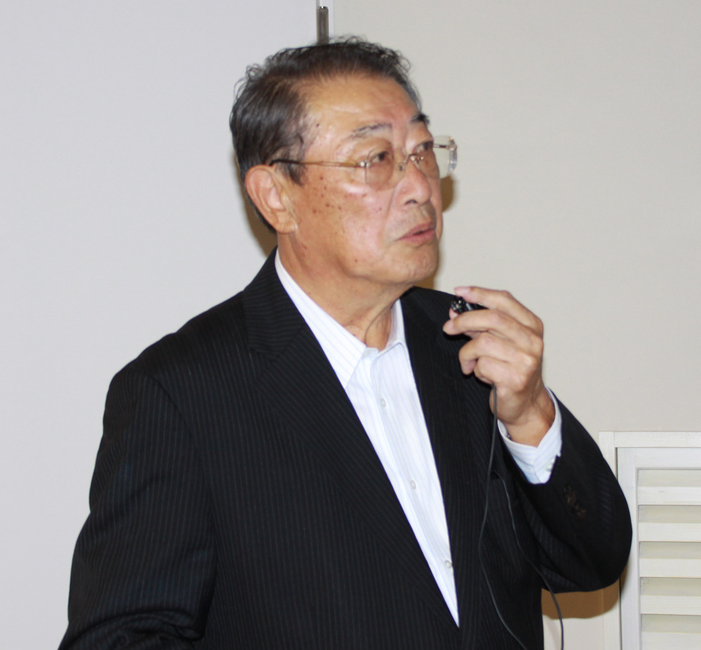 同講習会では中澤隆雄宮崎大学名誉教授(右肩写真)が基調講演を行い、宮崎県内の橋梁床版の損傷事例について、旧小戸之橋や旧相生橋、宮崎自動車道の長江川橋の例に挙げ、橋梁床版損傷について詳しく論じた。具体的には中性化深さの進展は舗装や防水工、下面補強の有無により進展速度が大きく変わり、凍結防止剤散布や飛来塩分濃度が高い箇所においても中性化が進んでいなければ、塩害による損傷は大きくないことを確認できた、とした。今後は床版防水工や(下面についても)表面被覆を行うことにより、床版損傷の進展を大きく抑制できる、と論じていた。