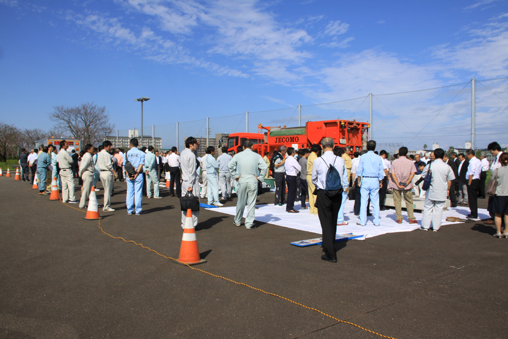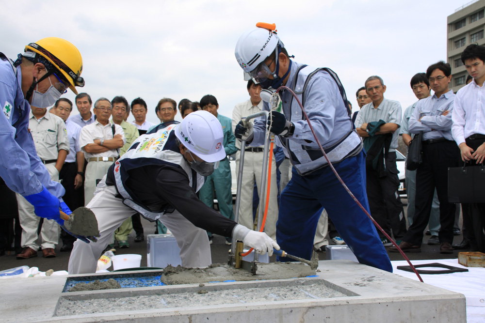 また、会場外のヤードでは、上記各種工法のほか、ジェットモービル車や橋梁床版点検車「スケルカ」なども展示され、一部の工法では供試体を用いた補修の実演もなされた。(文、写真:井手迫瑞樹、10月11日掲載、詳細は10月下旬に掲載します)