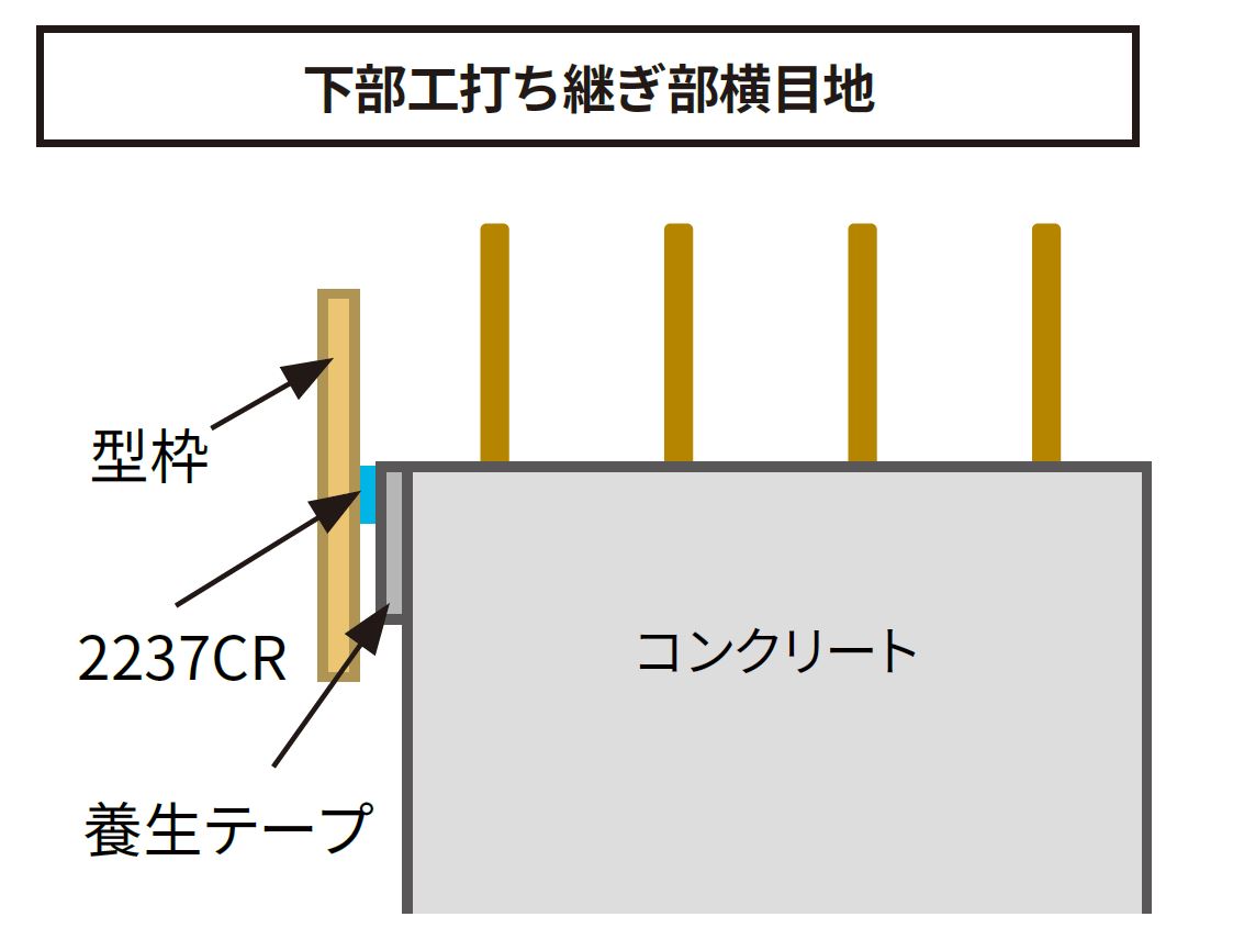 壁高欄のカーブ縦目地や下部工打継部の横目地など3mm以上の隙間が発生しやすく砂目地(型枠の接続部から生コンが漏れた状態で固まるもの美観を損なう)が出来やすい箇所にも対応するため3~5mmの隙間にも対応する厚手タイプのジョイントテープを開発したもの。通常1日程度かかる砂目地の撤去作業も不要になるため、工期短縮、省人化にも寄与できる。
