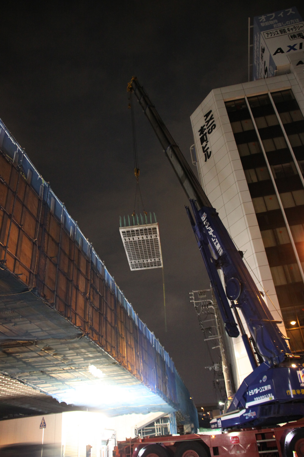 阪神高速 道路橋では国内初となるワッフル型UFC床版の架設現場を公開
