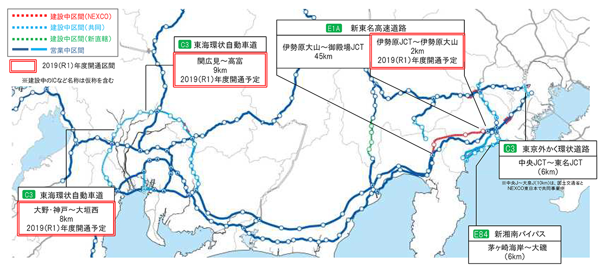 建設事業の現況(NEXCO中日本提供。以下、注釈なきは同)
