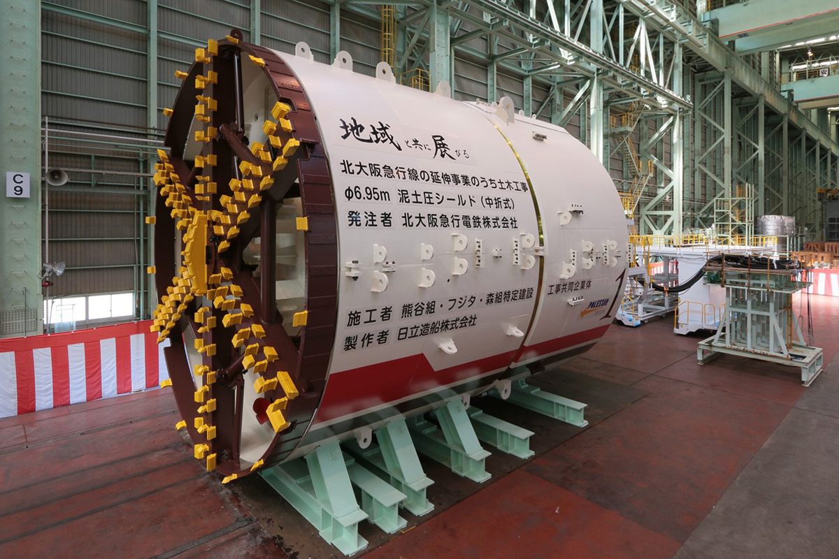 日立造船はこのほど、大阪府豊中市と箕面市にまたがって実施される北大阪急行線延伸事業向けのφ6.95m泥土圧シールド掘進機2機を、施工業者の熊谷組・フジタ・森組JVに引き渡した。