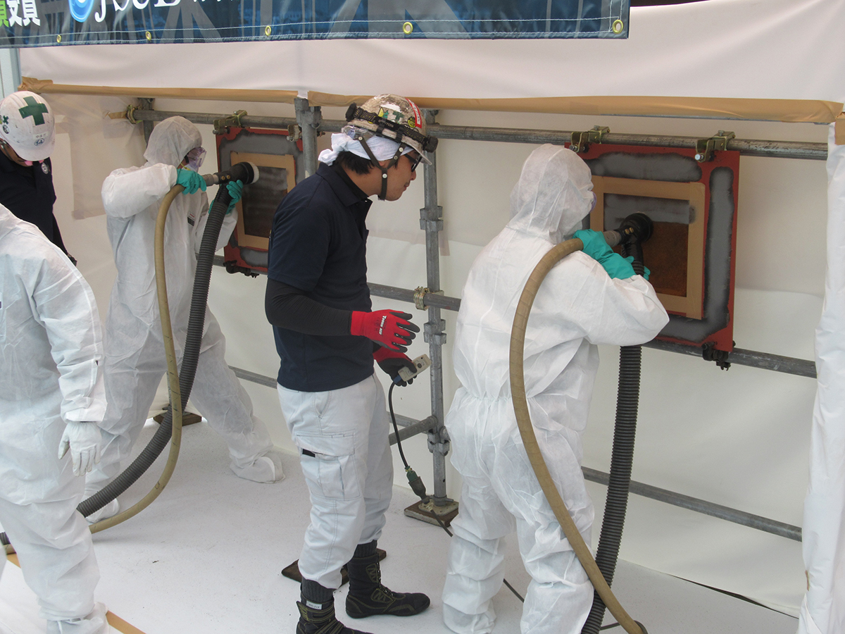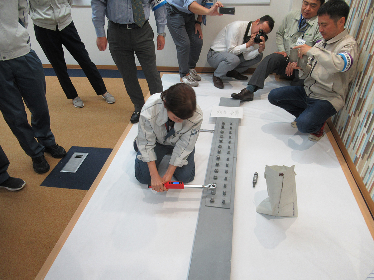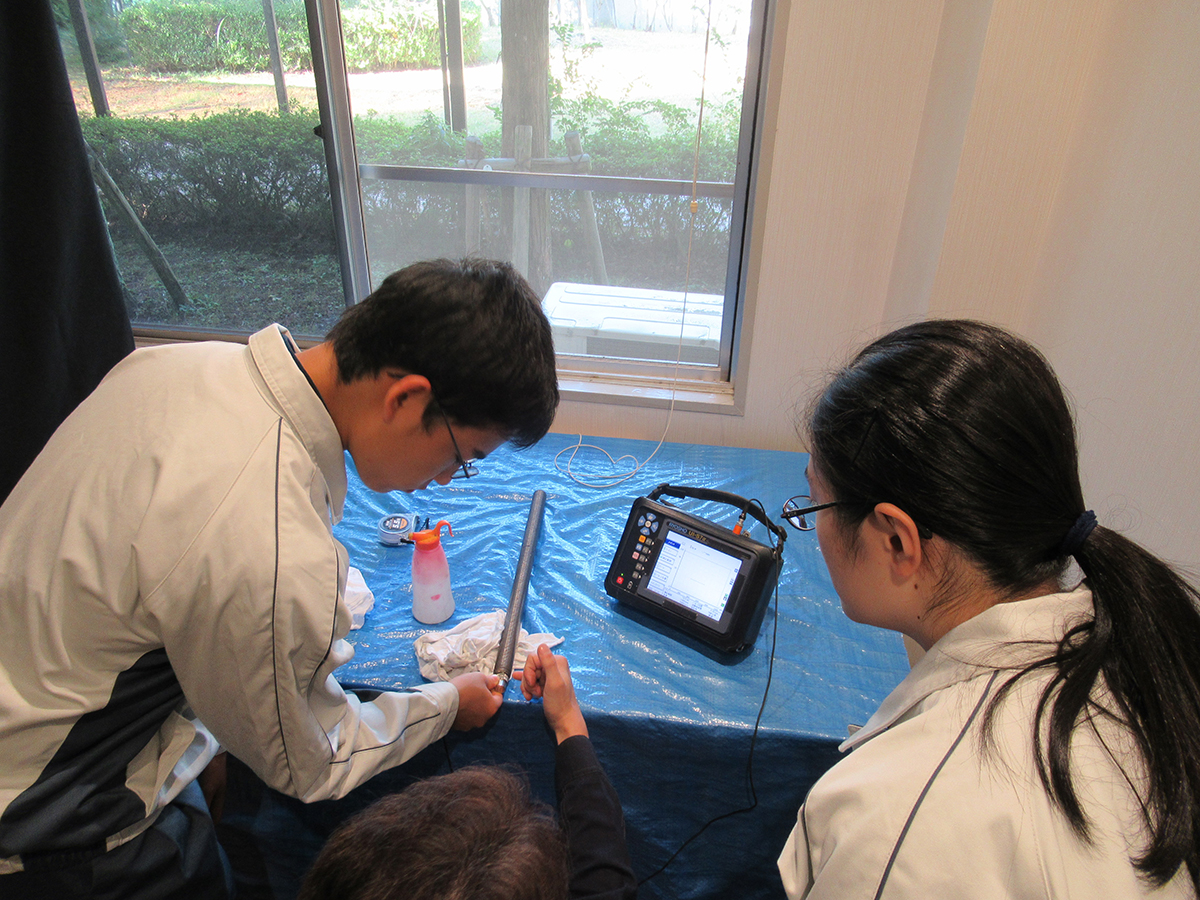 鋼橋の保全実習では、橋を長持ちさせることを目的に学生らは、①錆を除去せよ=ブラストによる錆の除去、②疲労亀裂を発見せよ=非破壊検査(MTやUTなど)を実施し、疲労亀裂の発生個所を調べる、③補強部材を取り付けよ=高力ボルトによる締め付けを実施し、所定のトルクとの誤差を確認――の3つのミッションに取り組んだ。