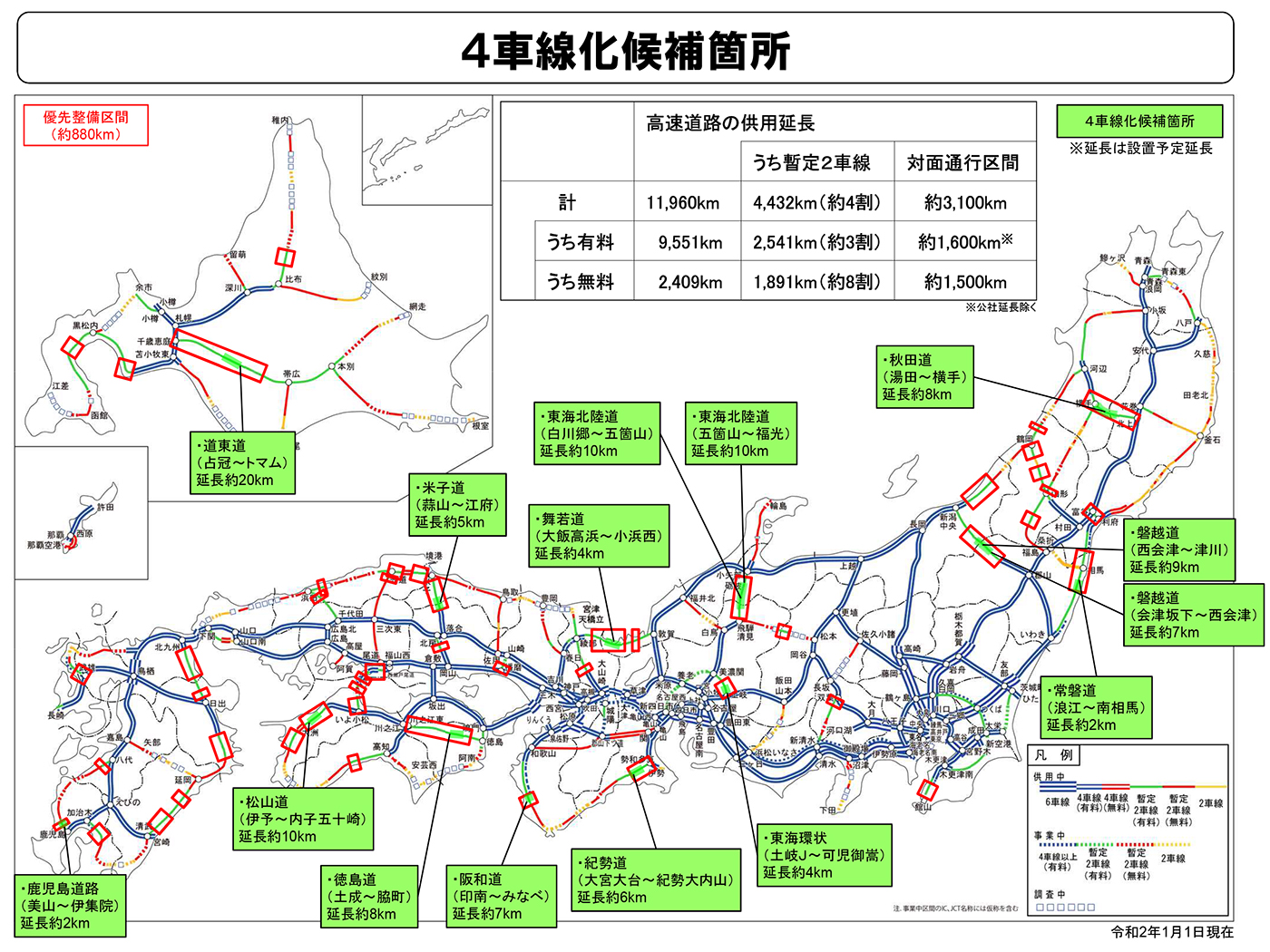 国土交通省 2020年度に着手する4車線化候補箇所を発表