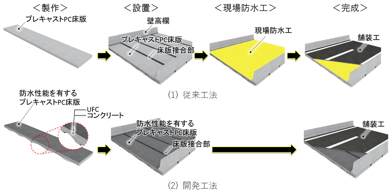 NEXCO東日本・大林組 UFCを上面に用いた高い防水性能を有するプレキャストPC床版を開発