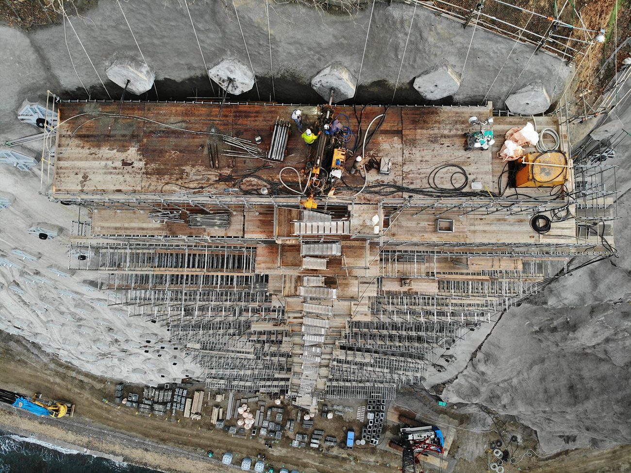 日綜産業が展開するのり面作業構台「マルチアングル(MA)工法」が北海道の「様似町ルランベツ法面補修工事」に採用された。現場は、高さ80m、斜度が90度近いのり面で、のり面アンカー117本を打ち込むための削孔機を載せる機械構台として、横29スパン(1スパン1,225mm、合計約36m)、高さ17段(80m)にわたり約150tが納入された。