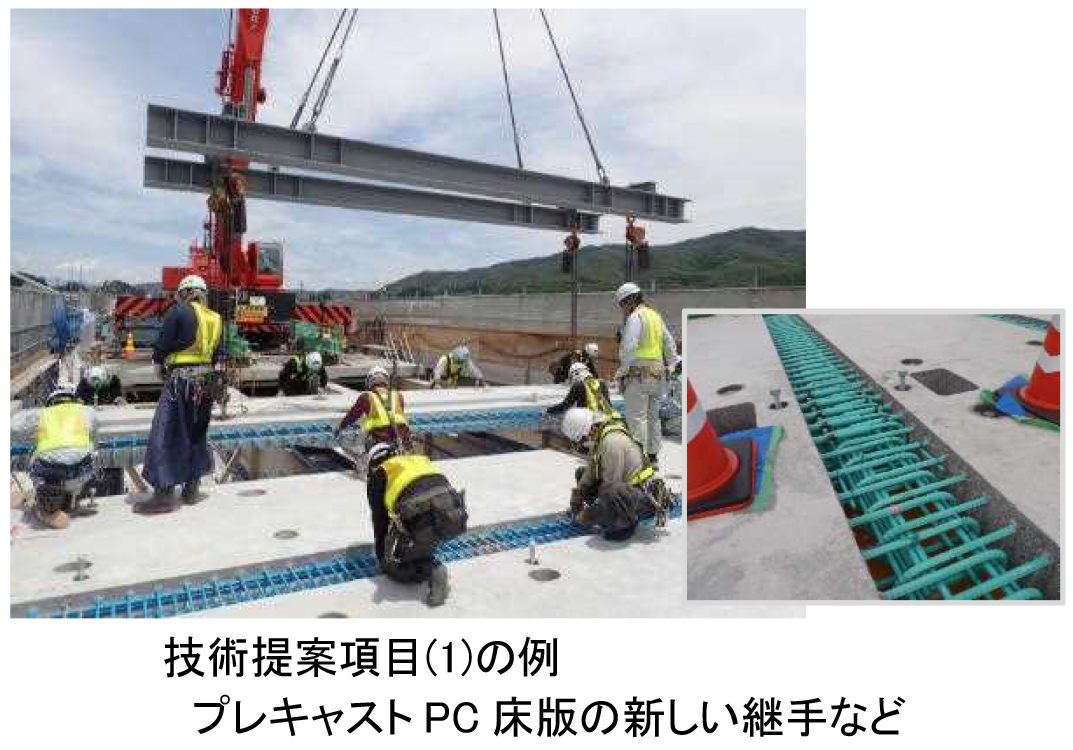 具体的にNEXCO中日本が求める提案内容は、両型共通として①床版取替工における、施工の省力化や簡略化につながる新技術・新工法の採用、②品質管理に関すi-Construction(省力化や省人化、ICT、IoT、AI)の導入、③出来形管理に関するi-Construction(省力化や省人化、ICT、IoT、AI)の導入で、施工技術競争型のみ、④基本契約に基づき締結する個別契約で得られた技術的知見やノウハウ・課題などを後続の個別契約に伝承・反映するための体制および方策も合わせて要求する。