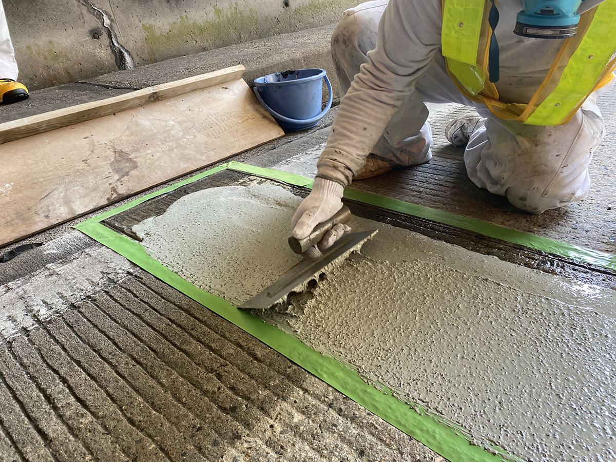 同製品は、2019年度までに同社が施工する国道維持工事に技術提案を行い、繰返し発生していた段差振動の苦情を解決したほか、北陸地方や中国地方の高速道路のトンネル内コンクリート舗装の版端部や目地の補修に採用されている。また、職員による直営施工で橋梁補修DIYを実践している熊本県玉名市では、機能不全となった埋設型橋梁ジョイントの遊間部に適用された。「付着が強く動きに追従し、目地だけでなく面的にカバーできる点」が評価されたという。