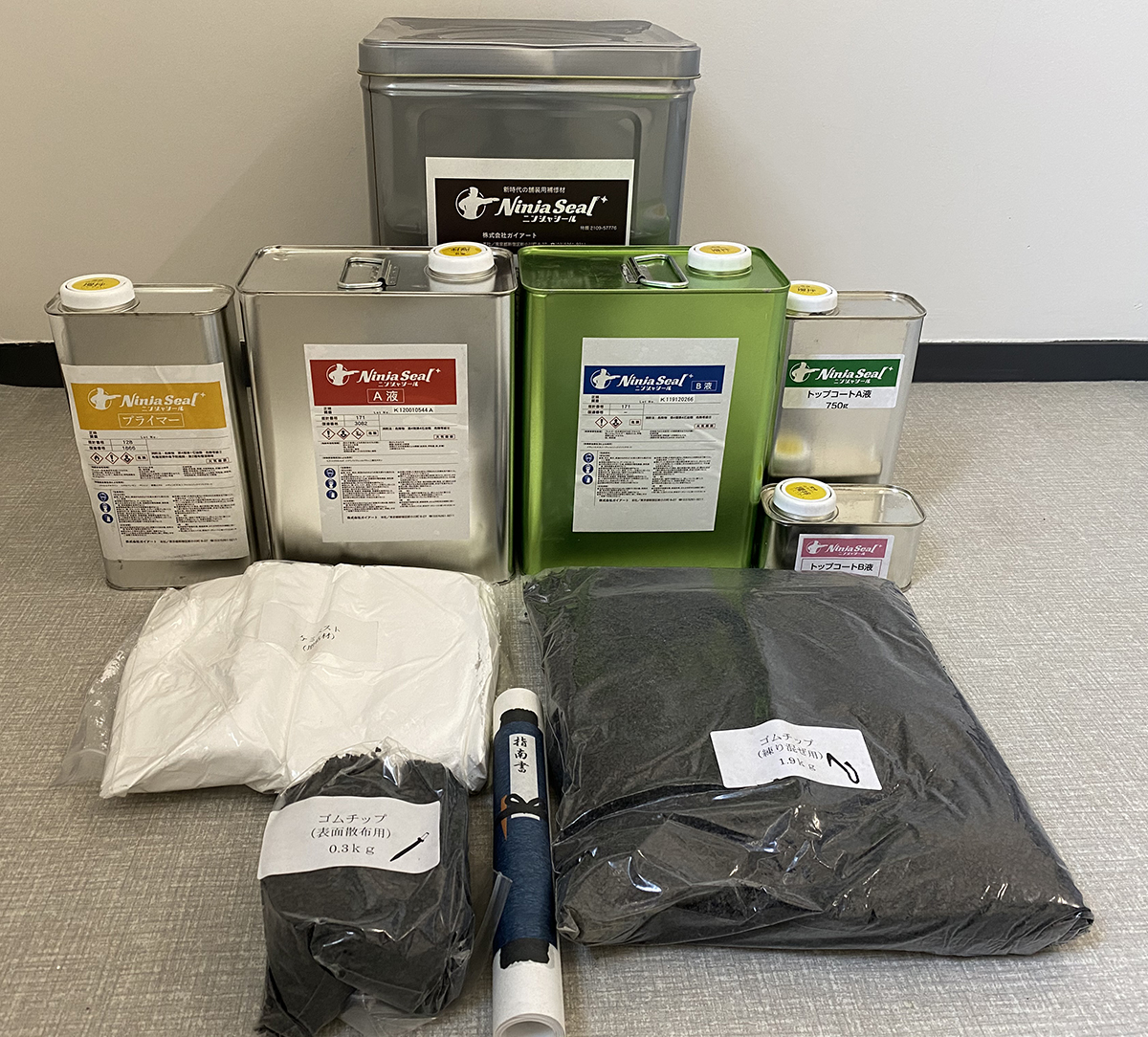 ニンジャシールの施工状況/1缶に材料をすべてパッケージ化