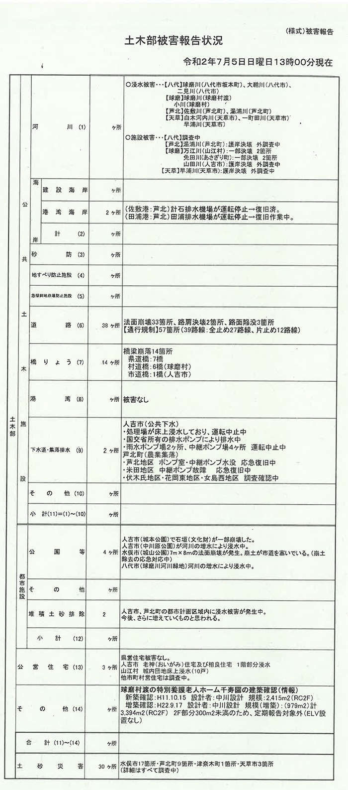 7月5日13時現在の被害報告(熊本県公開資料より抜粋)