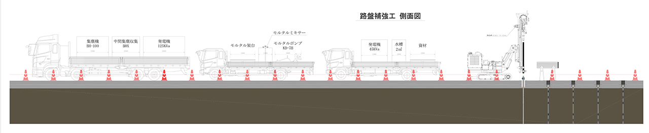 今後は、高速道路リニューアルプロジェクトや国道トンネルでの採用を目指していく。実施工の際には、集塵システムをトラック上に設置することでコンパクト化して、設備の設置撤去時間を短縮することで作業可能時間の最大化を図り、夜間規制のみでの施工も実現していくという。