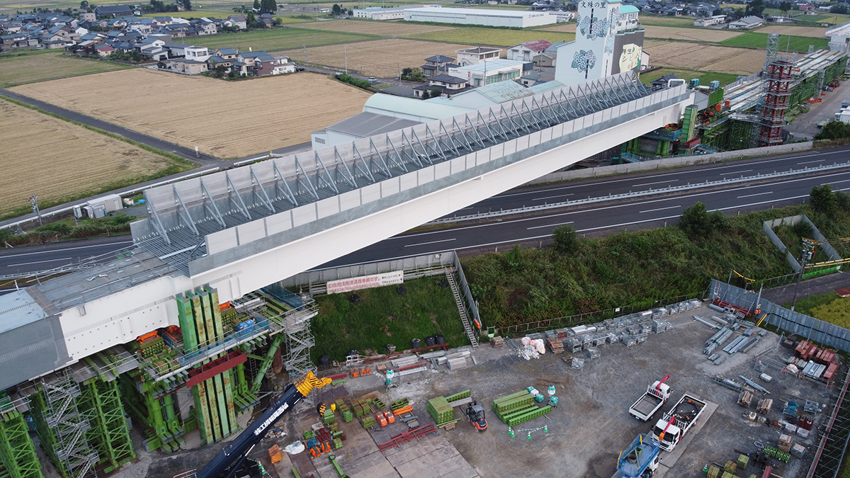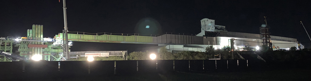 16日夜間には北陸道を通行止めの上、63mを送り出して中央径間の送り出しを完了させた。10月6日夜間には0.65mの桁降下を行う予定だ。