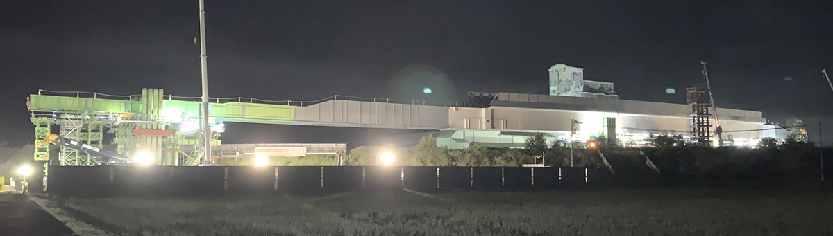 北陸新幹線・福井架道橋 主桁約131m、手延機などと合わせて220mを送り出し