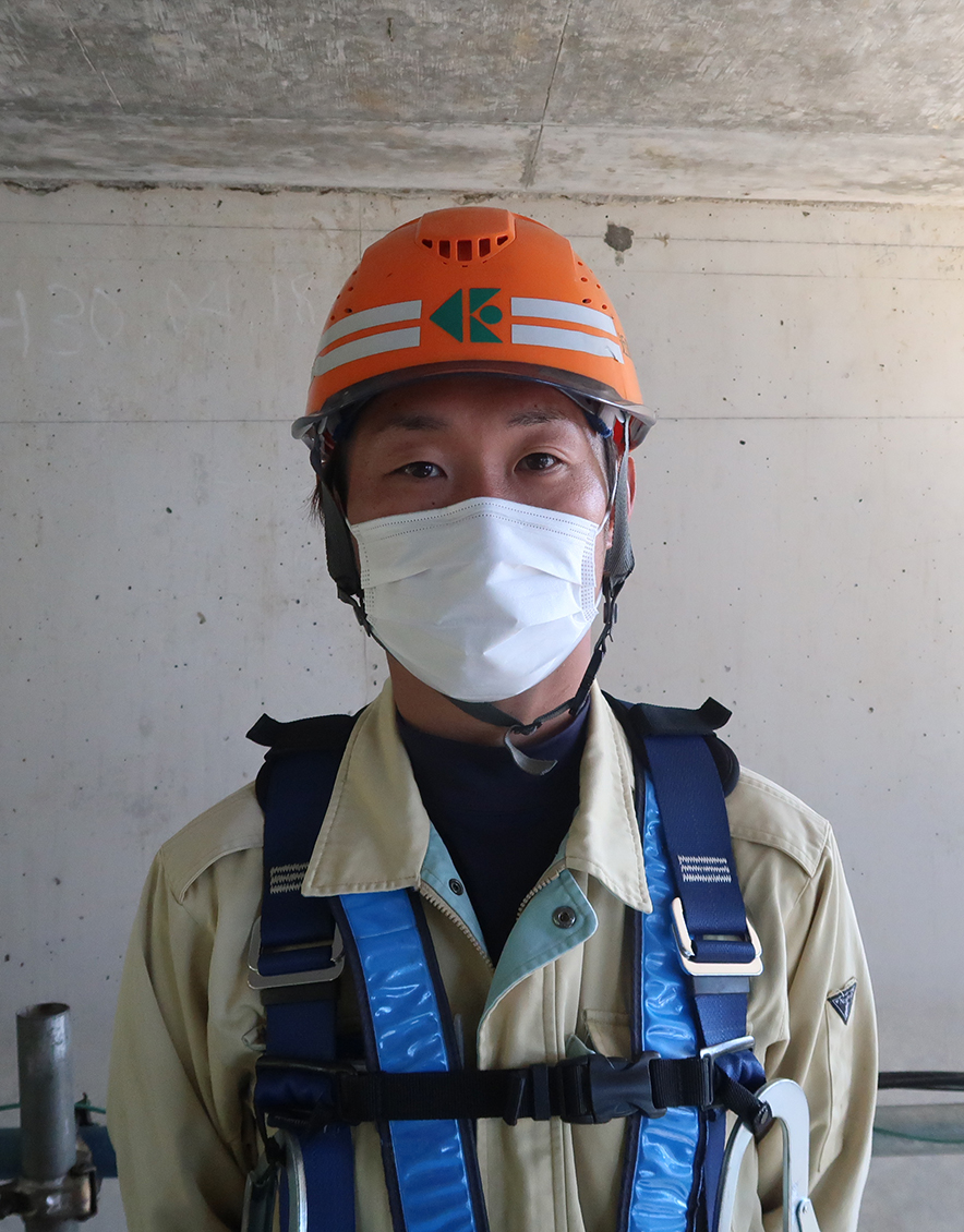 近鉄軌道エンジニアリングの吉川直記氏は、「従来のパイプ吊足場やほかの吊足場工法と比べて、設置が非常にしやすく、部材も軽くて安全に施工ができた。アンカーも1スパンで片側1本ずつ両側2本を打つだけなので、作業効率も良かった」と評価する。